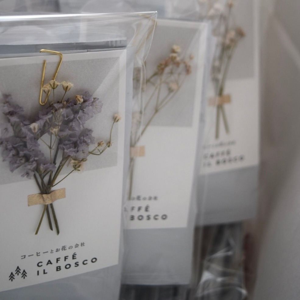 そんな気持ちで作った2種類のミニギフト。ドリップバッグとメッセージカード、ドライフラワーを1つのセットにしました。今回の商品化にあたり、プレゼントをもらった時の気持ちをいろいろと想像してみました。その中で、私達として大事にしたい3つのポイントがあります