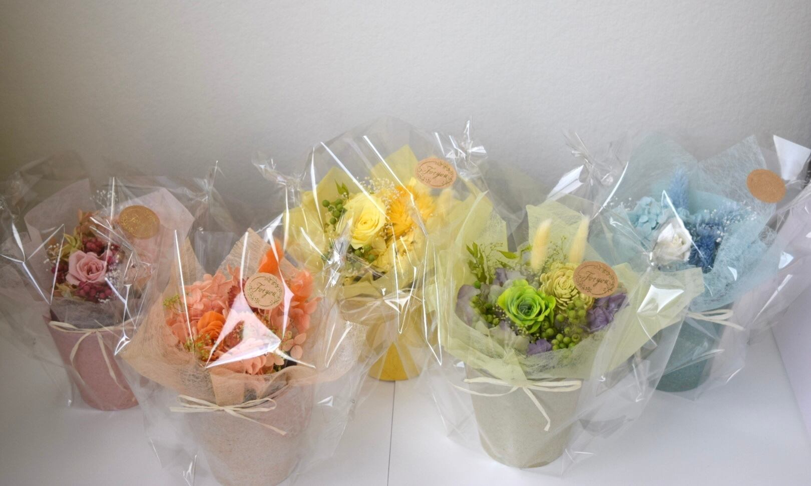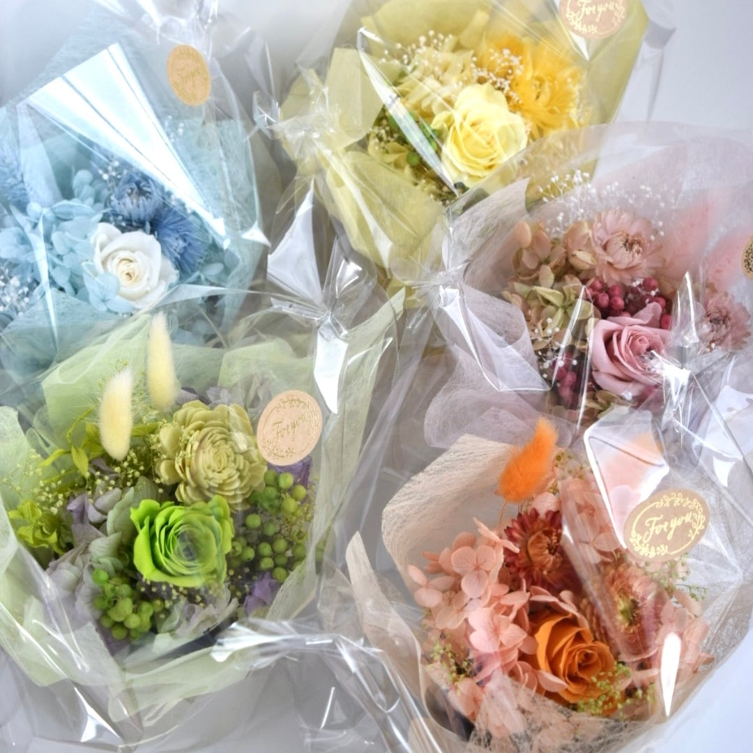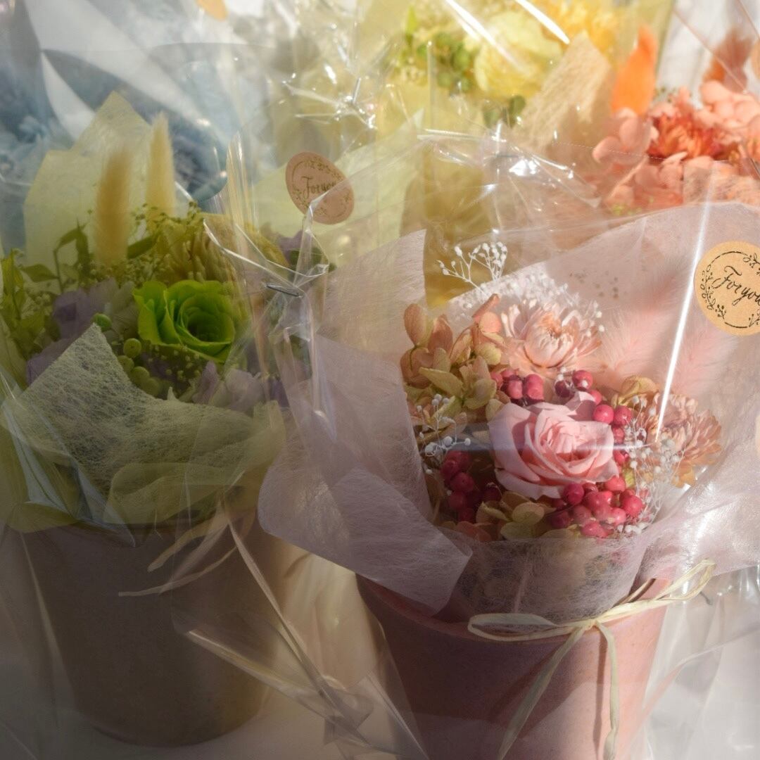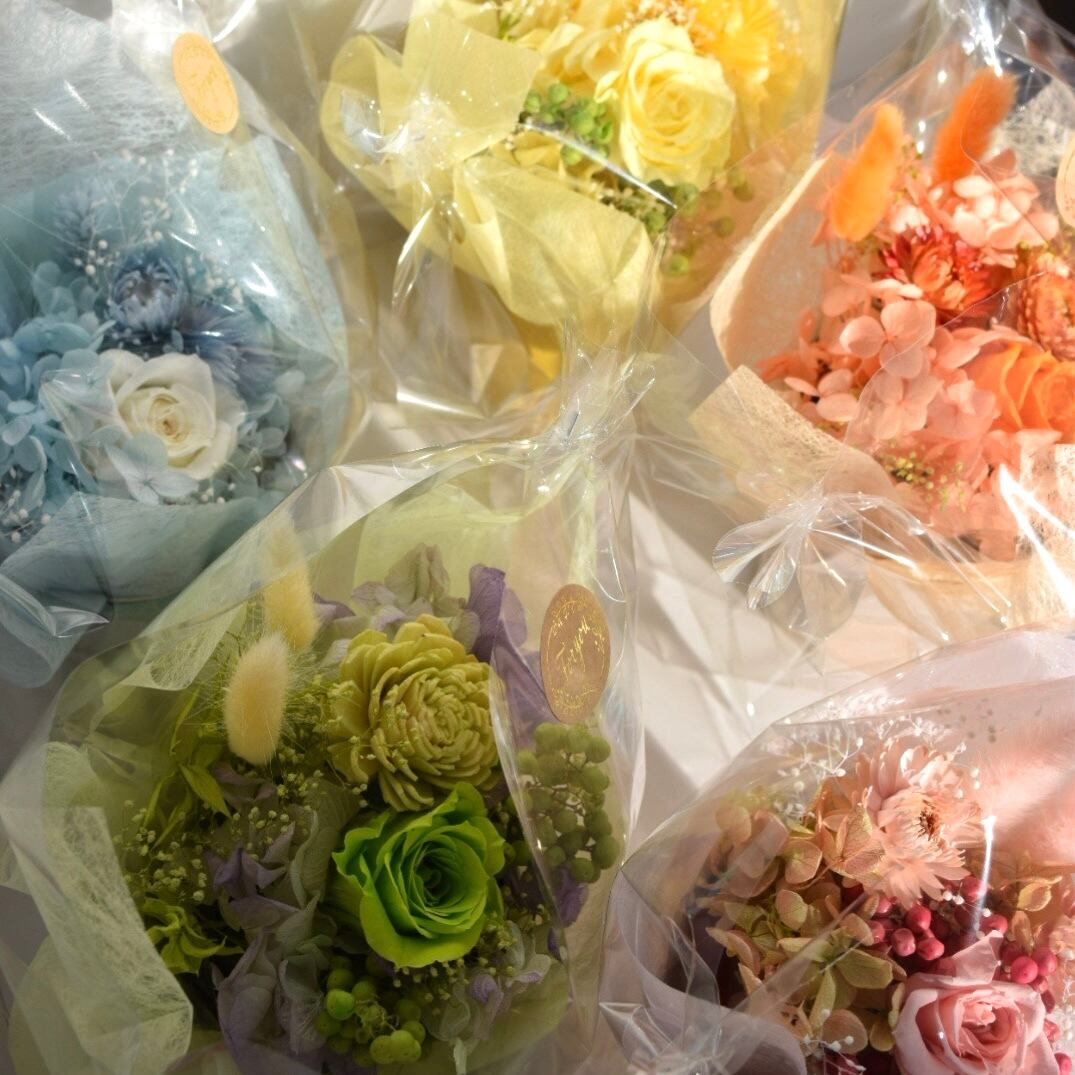 カラフルでポップな色合いのお花達は、生花とはまた違った質感があり、ナチュラルで可愛らしい雰囲気も魅力の一つです。