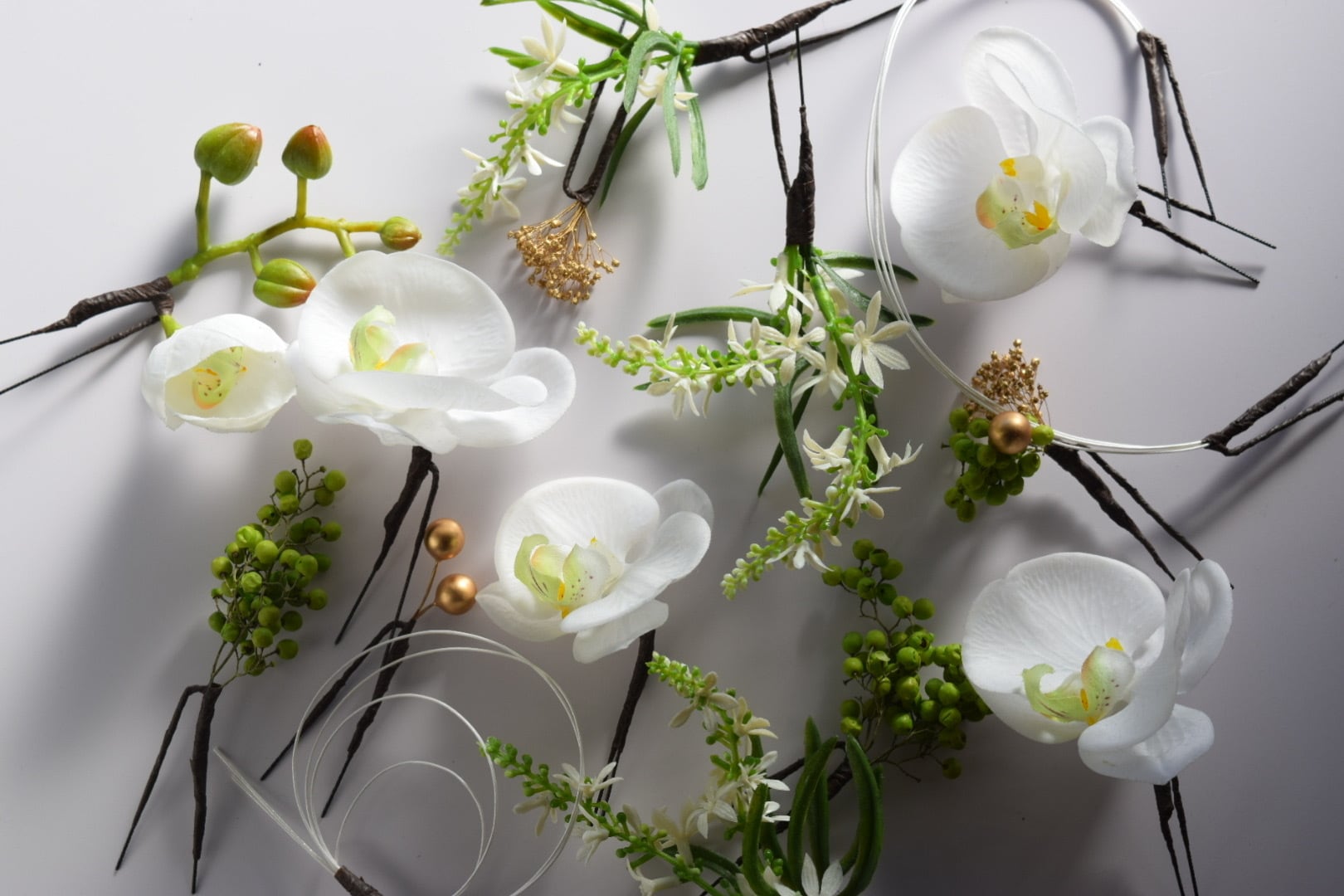 お持ちいただいた写真、写真立て、小物等を使用し、イメージに合わせ装飾致します。少ない本数でもご対応可能ですので、是非ご相談ください。