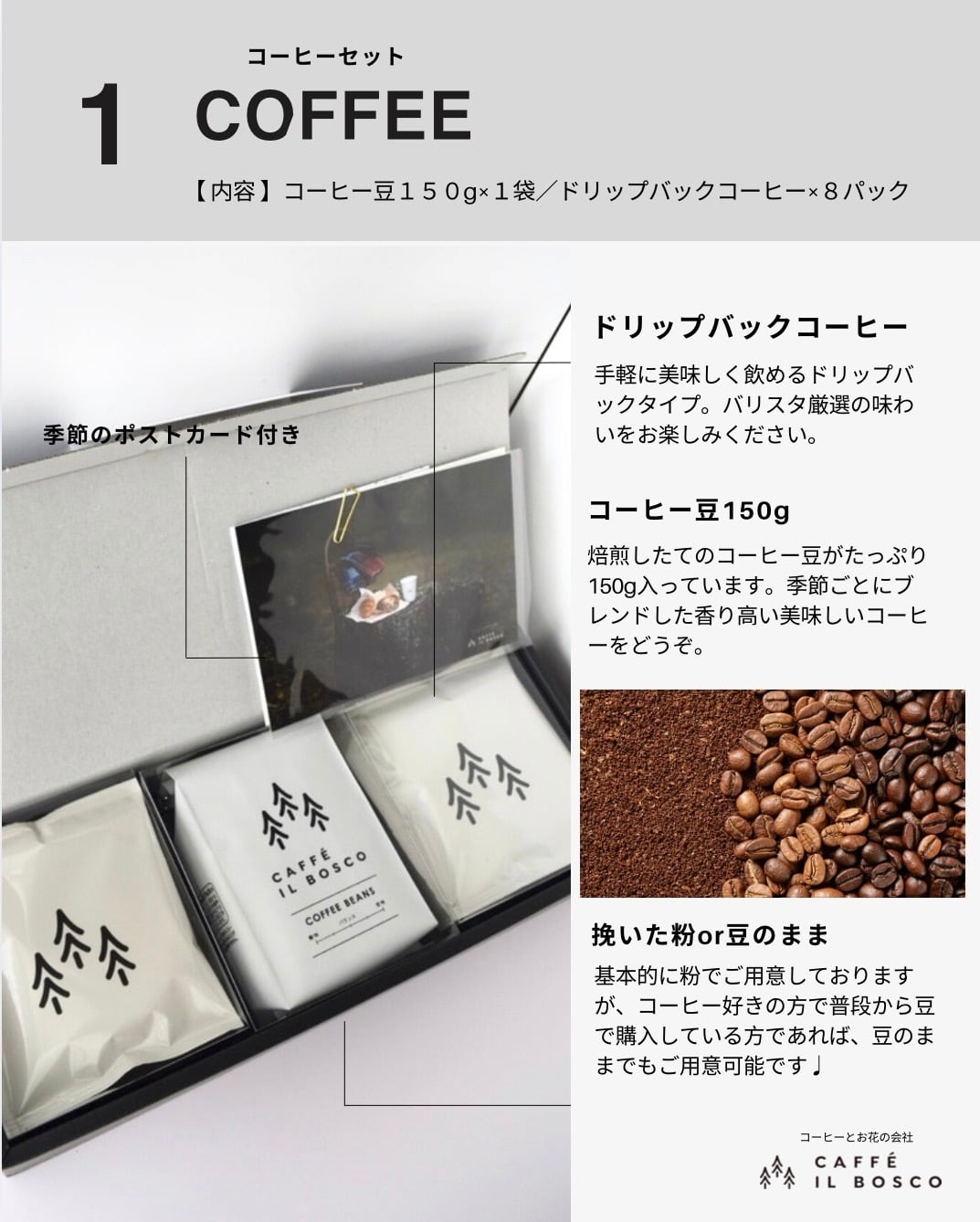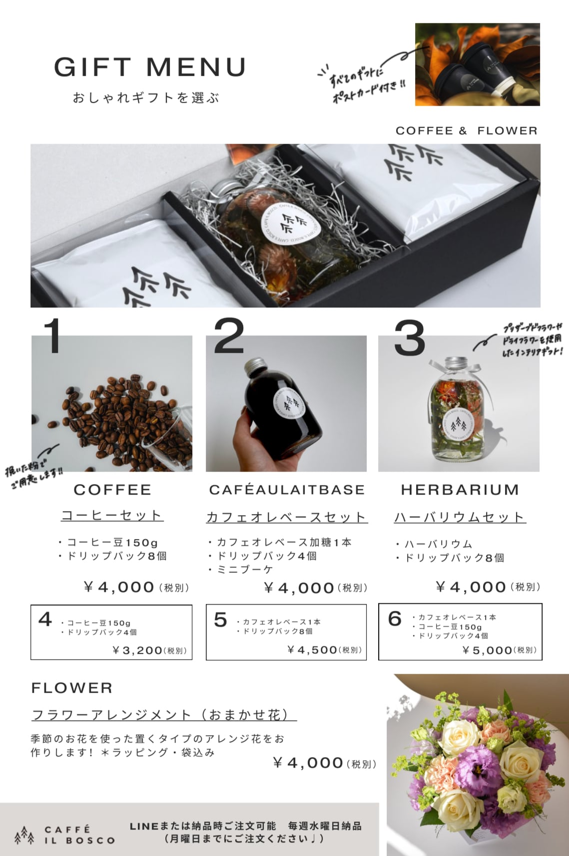お祝いの場面に最適なギフトをご用意致します。美味しいコーヒーや季節のお花を使ったおしゃれギフト。※企業様向けのラインナップとなっております。